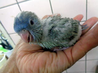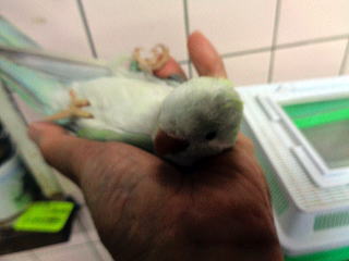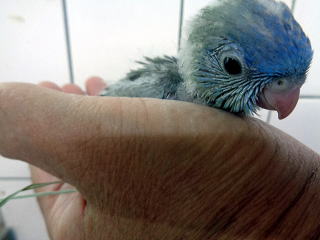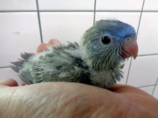 手のりオキナインコ(アクアブルーパリド) 8月生まれ オス 10万円(税込) とてもよく馴れています。 2025/10/19撮影 |