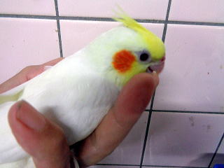手のりオカメインコ(ルチノー) 9月20日生まれ 3万円(税込) 体格大きくよく馴れています。 2025/10/19撮影 |