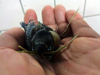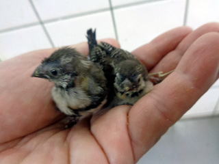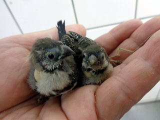 手のりカノコスズメ 10月2日生まれ 18,000円(税込) カノコスズメの手のりヒナは とてもめずらしいです。 よく馴れます。 2025/10/24撮影 |
