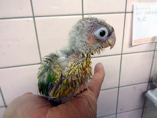 | ヒメコンゴウインコ(2025年10月タイ輸入) 2025年7月7日生まれ メス 48万円(税込) PBFD,クラミジア検査済み(陰性) 1日3回さし餌してます。とてもよく馴れています。 2025/10/22撮影 |