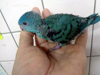 手のりコザクラインコ (パリッドターコイズ) 11月2日生まれ 27,000円(税込) とてもきれいでかわいいです。 2025/11/28撮影 |