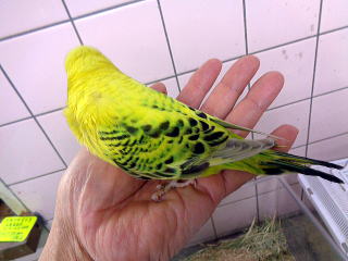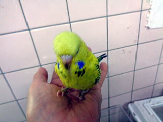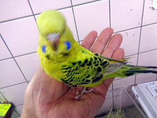 手のり大型セキセイインコ(スパングル) 3月2日生まれ 28,000円(税込) 両親ともにベルギーブリードの 大型セキセイインコです。 2026/3/30撮影 |