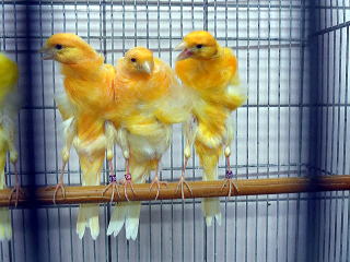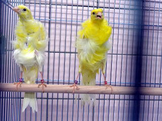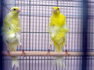 巻毛カナリヤ(2025年リング) ペア 45,000円(税込) 品評会出品クラスの上物のペアです。 2025/11/25撮影 |