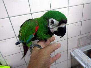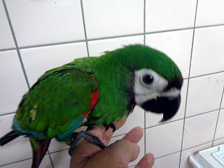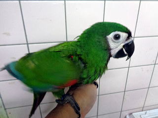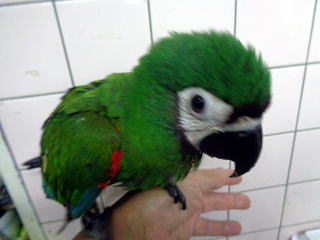 | ヒメコンゴウインコ(2025年10月タイ輸入) 2025年7月7日生まれ メス 48万円(税込) PBFD,クラミジア検査済み(陰性) 1日3回さし餌してます。とてもよく馴れています。 2025/10/22撮影 |